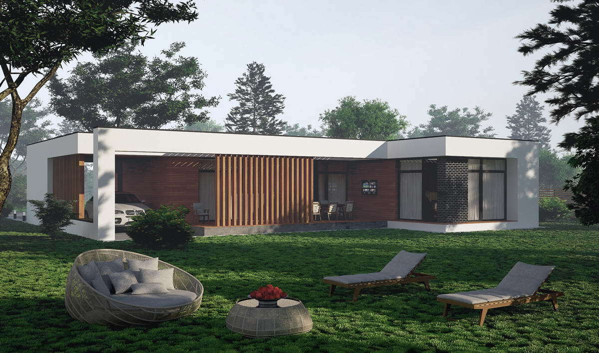 Проект 2-ух этажного дома с плоской крышей F2-260